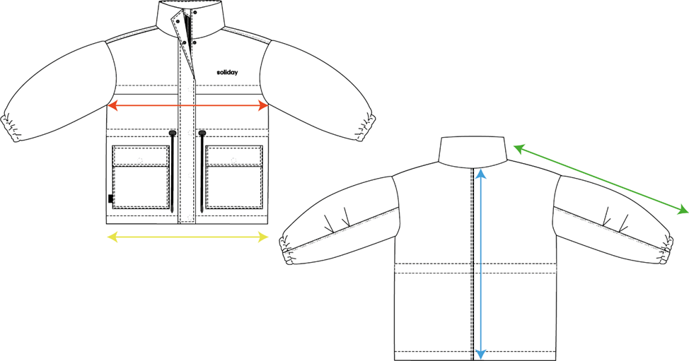 Силуэт прямой, свободный, с запасом на многослойность. Высокий воротник-стойка, центральная застежка на молнию с ветрозащитной планкой, накладные карманы и эластичные манжеты на рукавах. По линии талии — регулировка на шнуре.